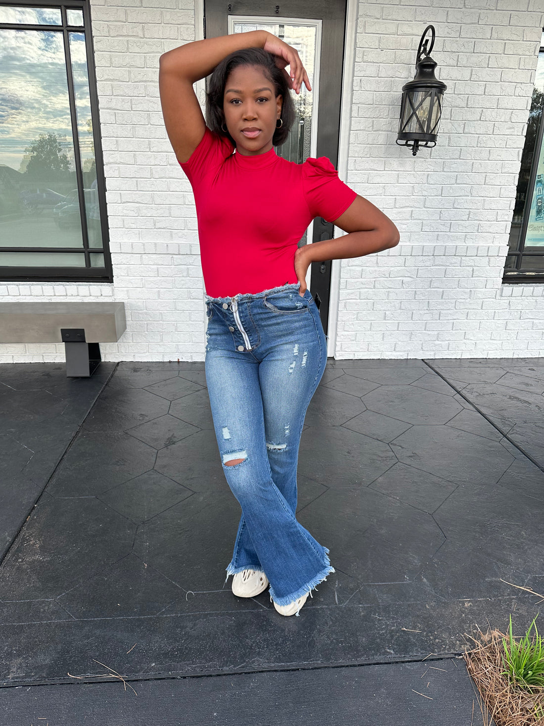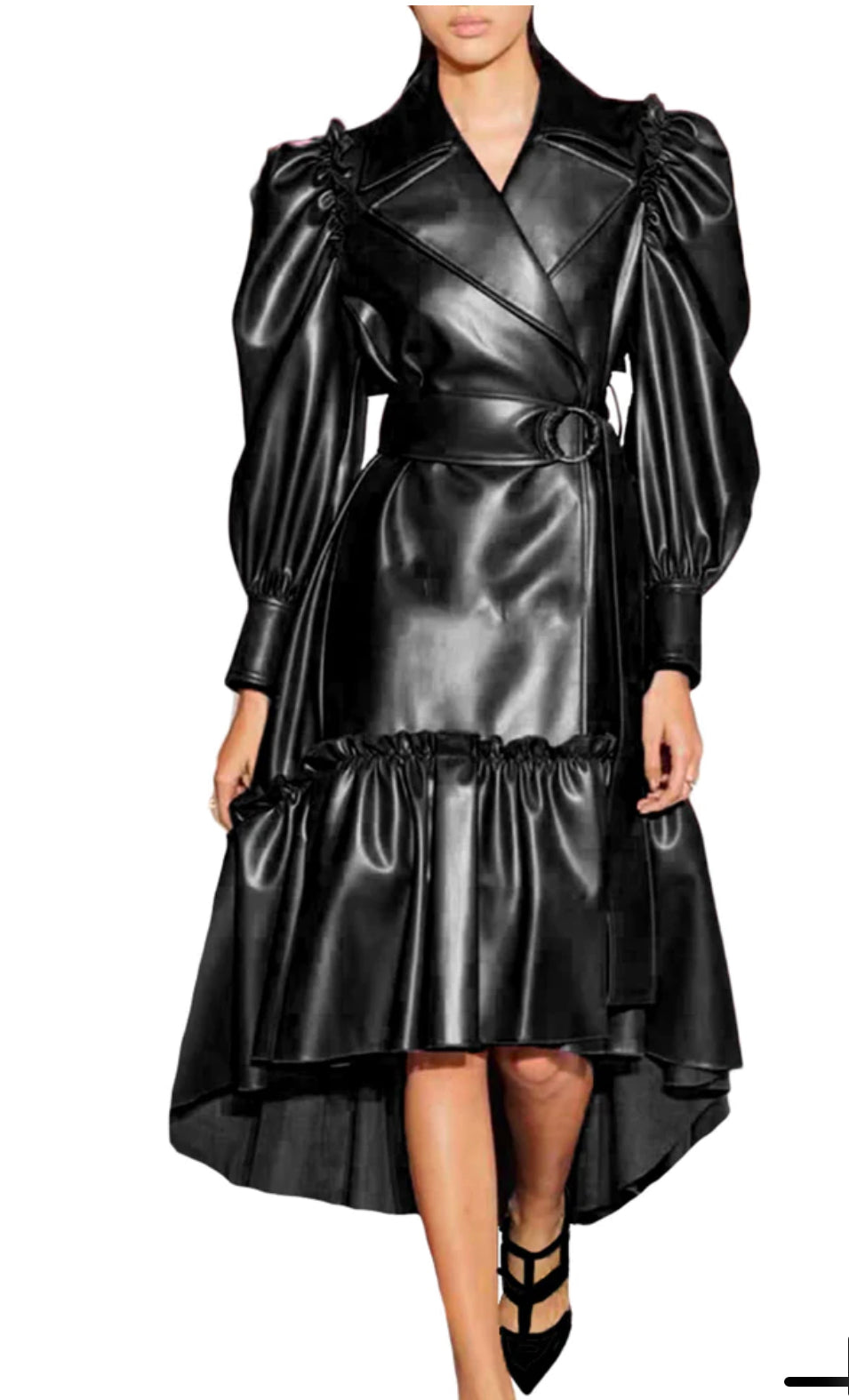 Velvet puffed sleeve dress.