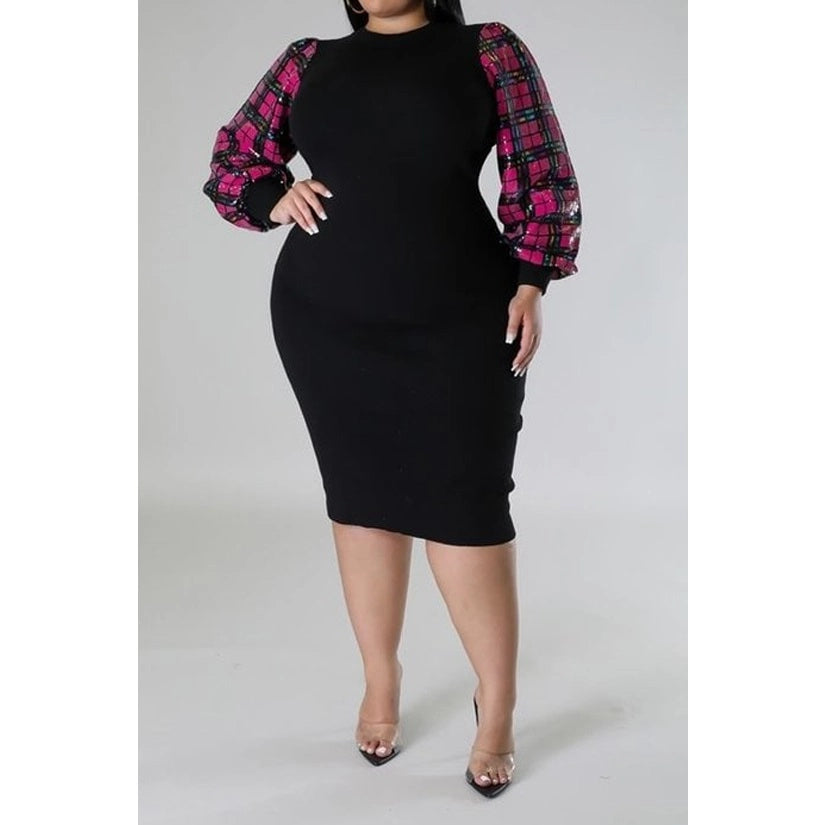 VELVET FITTED MIDI DRESS WITH PUFF SLEEVES